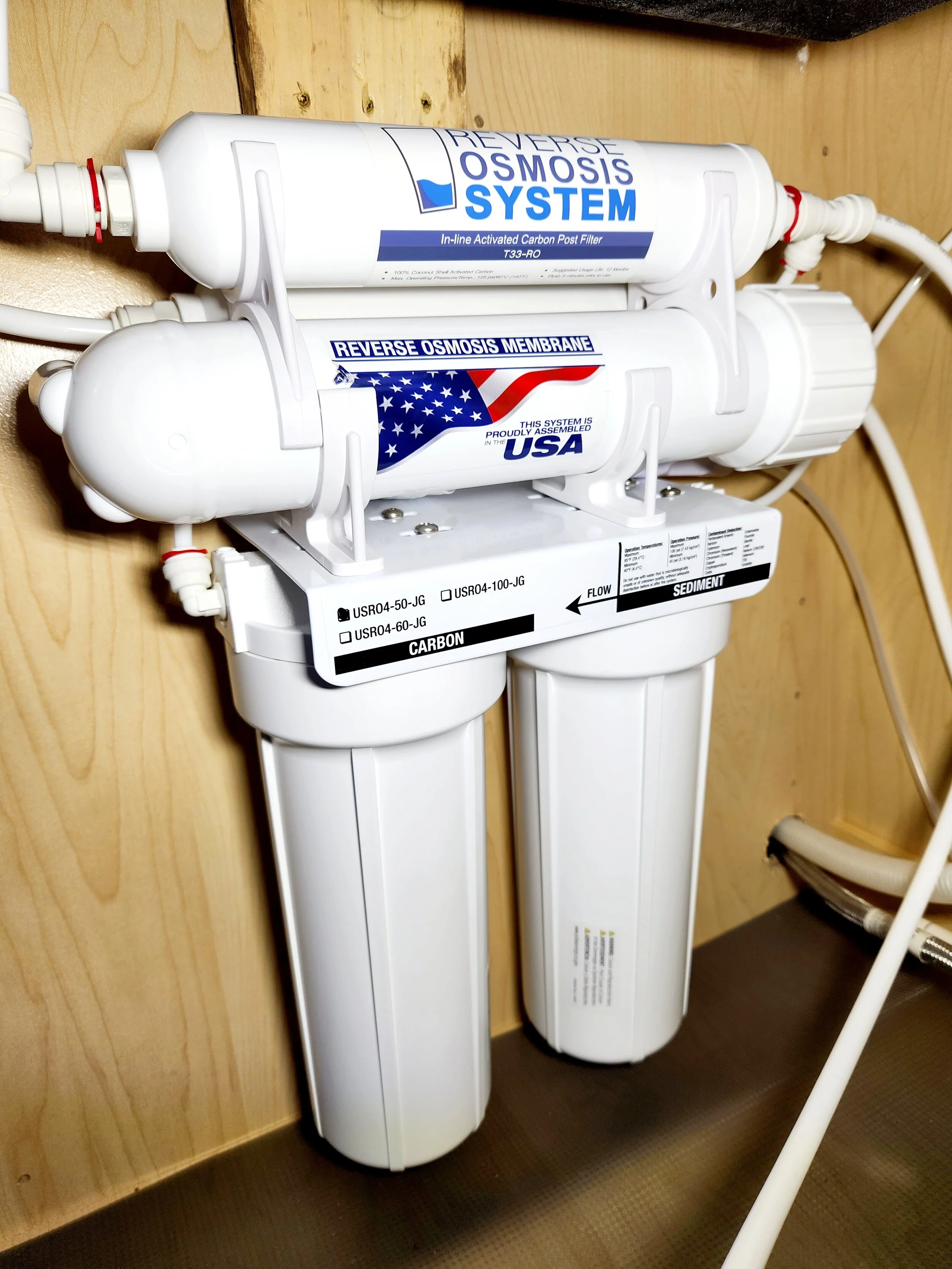 Point of Use (POU) Reverse Osmosis systems are usually installed under the kitchen sink, but basement and crawlspace installs are not uncommon. The filtered water is connected to a designated faucet, refrigerator, or both. Should you choose to have an RO faucet, we will install it on the countertop. Many faucet styles and finishes are available.